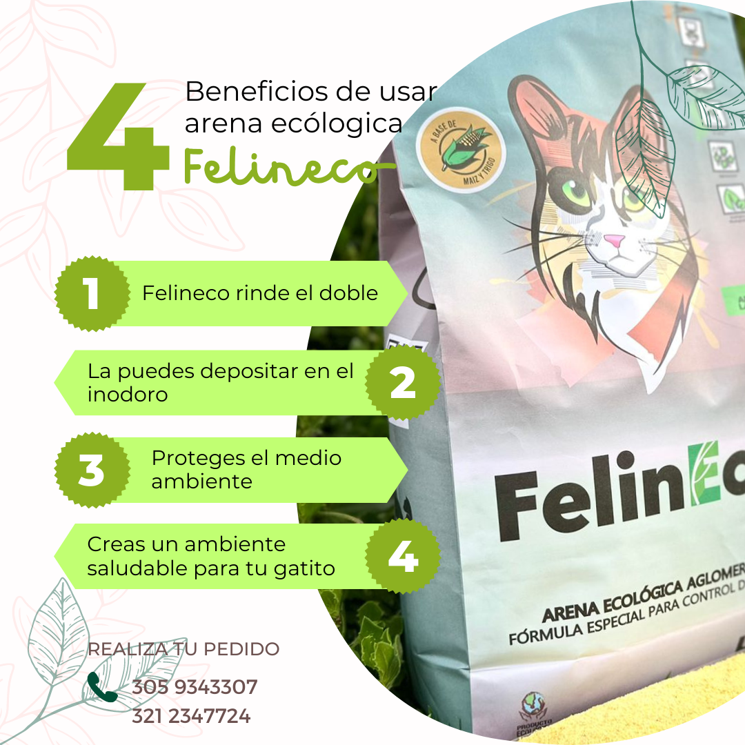 Nuestra arena ecológica Felineco a base de maíz cuenta con los siguientes beneficios: