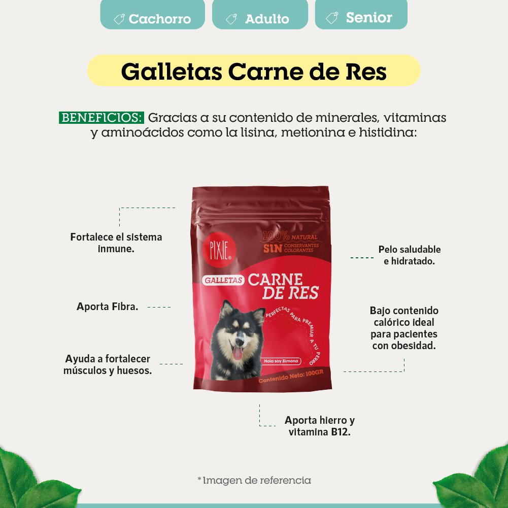 - Galletas 100% naturales diseñadas con el tamaño ideal para entrenar a tu mascota.