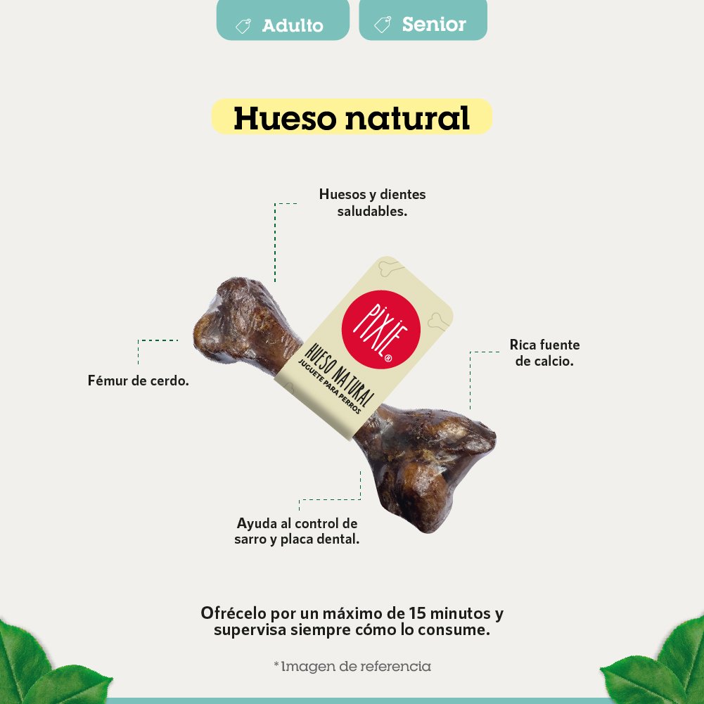 Nuestro hueso natural Pixie es una rica fuente de calcio. No permitas que se lo coma todo en un solo día. (Ver instrucciones de alimentación)